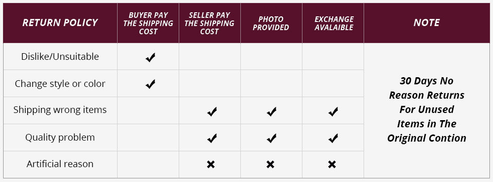 Handing Time | Ship Within 24hours After Payment Except Weekends and Holiday | |
